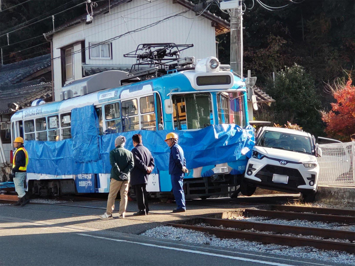 【運行再開】路面電車に車が衝突、脱線 高知市 | 高知新聞路面電車と普通乗用車が衝突した事故現場(6日午前9時45分ごろ、高知市大津甲=画像を一部加工) 6日午前8時ごろ、高知市大津甲の交差点で、同市内の50代女性が運転する普通乗用車が路面電車に衝突し、電車が脱線した。…...www.kochinews.co.jp↓