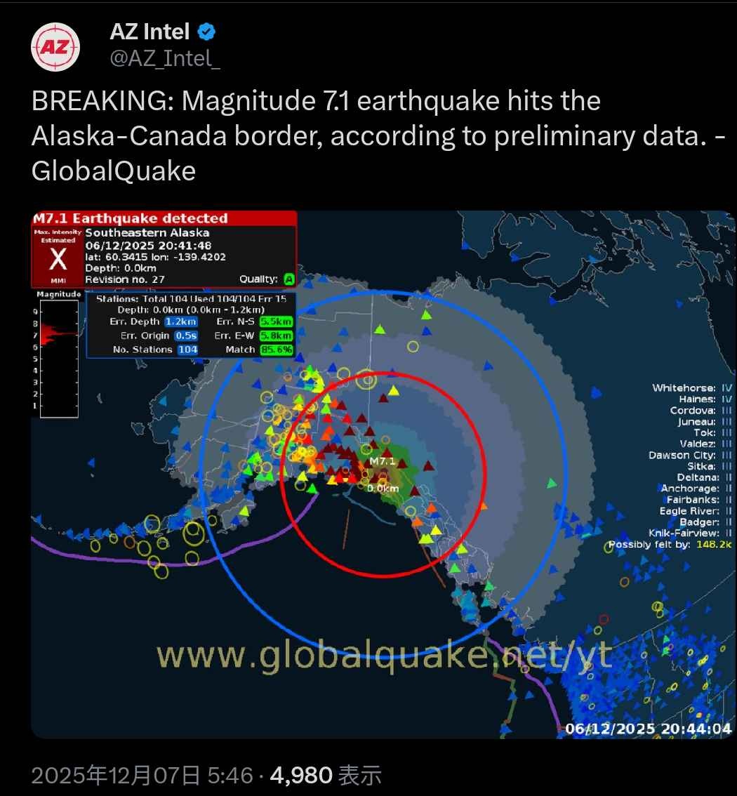 しかもアラスカで人が多くすんでるところ直撃じゃねえか 日本人が経営してるラーメン屋とかあるしな