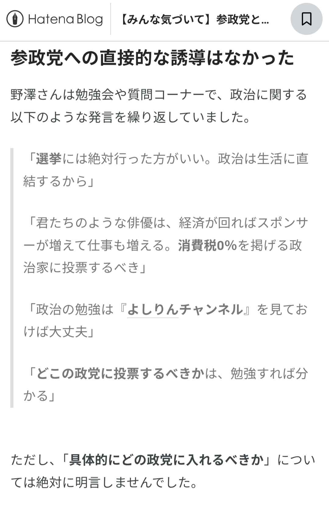 ただし、「具体的にどの政党に入れるべきか」については絶対に明言しませんでした。