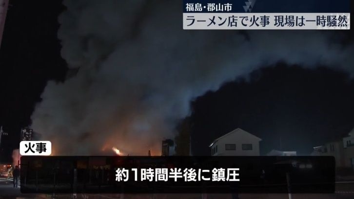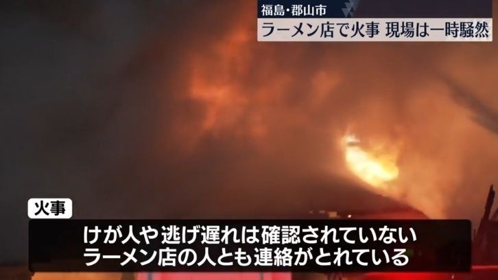 現場は幹線道路のすぐそばで住宅街や飲食店があり、現場は一時騒然としました。 ラーメン店で火事 現場は一時騒然 福島・郡山市(2025年12月7日掲載)|日テレNEWS NNN福島県郡山市で7日午後、建物が燃える火事がありました。これまでのところ、けが人や逃げ遅れは確認されていません。news.ntv.co.jp「1階が燃えている」営業後のラーメン店兼住宅が全焼 けが人なし 福島・郡山市