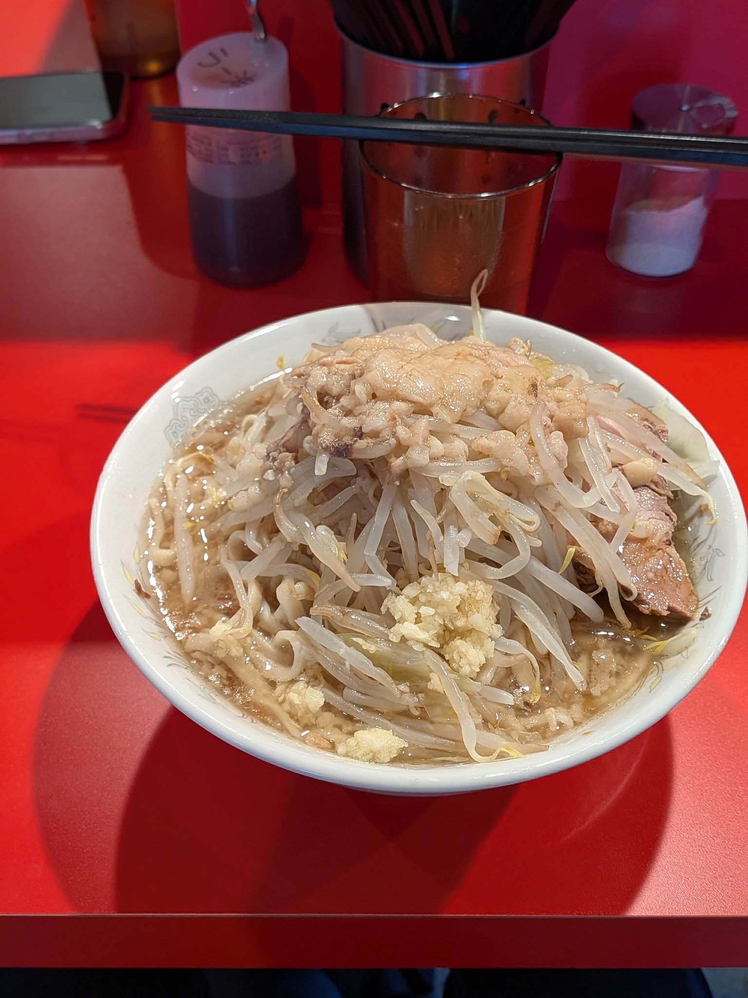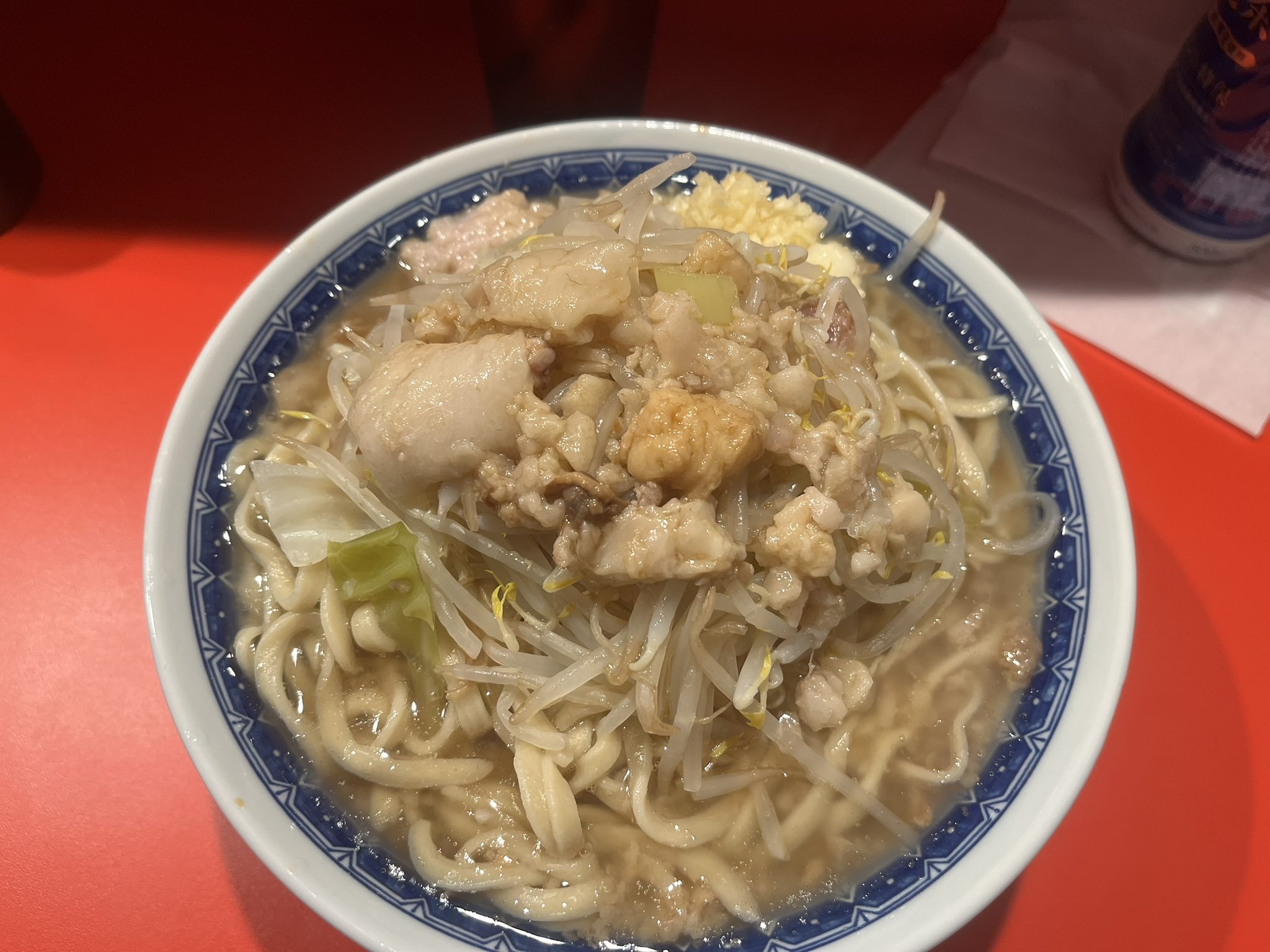 3時間半並んだ末に辿り着いた一杯は、圧巻。二郎とは何たるかを東海地方のシャバ僧共に知らしめんとする味に身震いしながらも爆速で吸引し7分で退店。