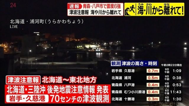 【速報】津波警報を注意報に切り替え 青森で震度6強(日テレNEWS NNN) – Yahoo!ニュース