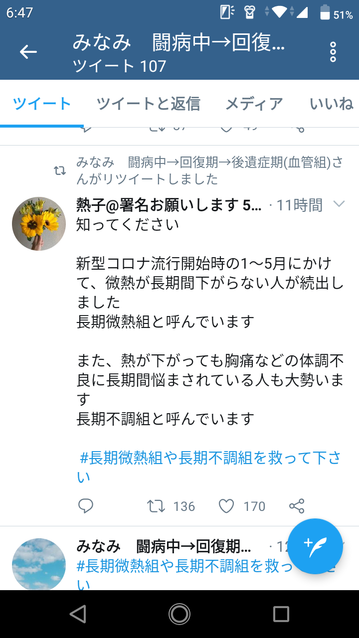 みなみ 闘病中→回復期→後遺症期(血管組)@minami_h373