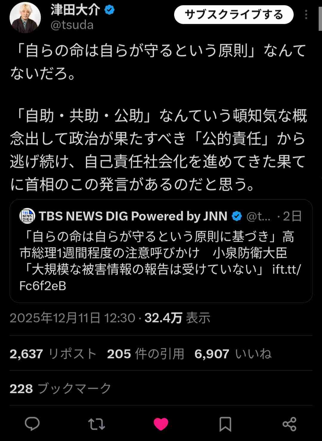 高市早苗、被災民に対し「自分の命くらいは自分で守ってくださいね」と切り捨てし大炎上