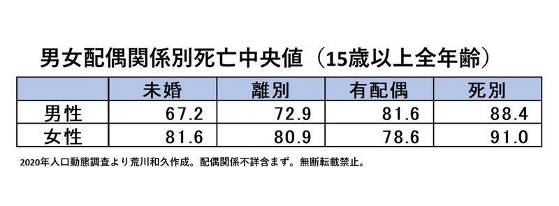 未婚も結婚する前に4んだやつ含むやろうから実際は10年以内の差じゃねえかな