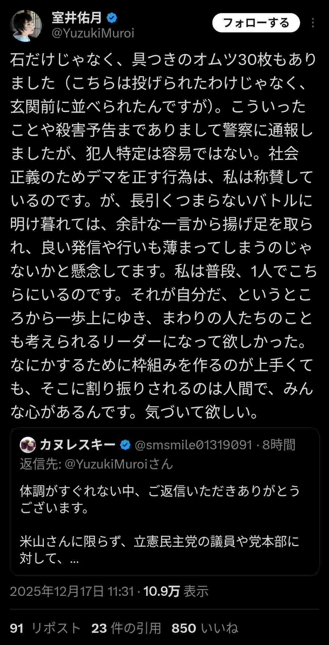 まあ室井佑月がアンチはスルーして政策議論だけしろって言うのは完全に正論なんよ