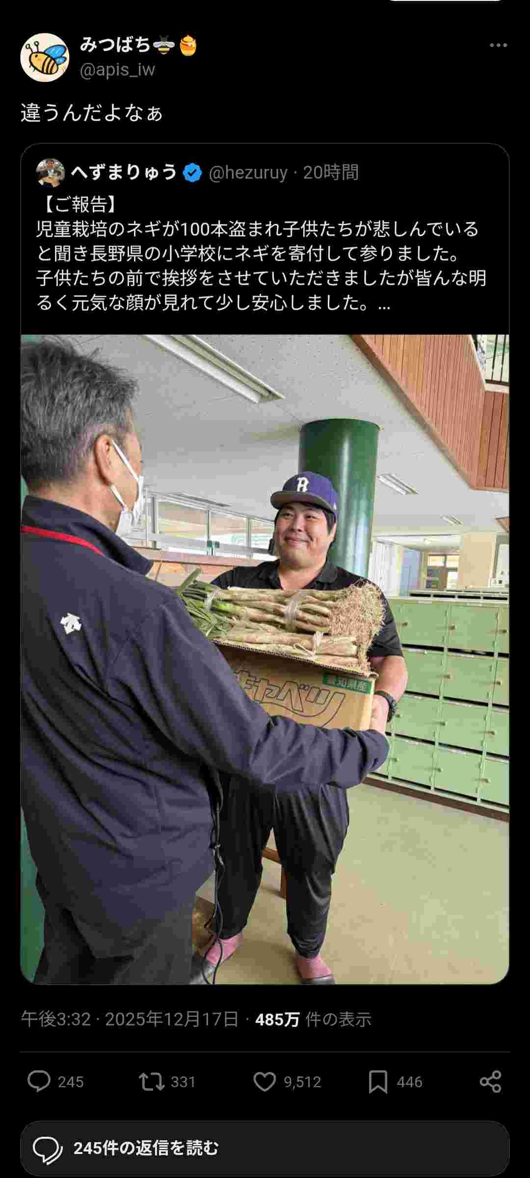 子供たちが頑張って作った~ってとこがかわいそうなわけで、他所で買ってきたネギ自体を欲してるわけじゃないんだがな