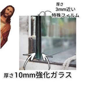 〉厚さ10mmの強化ガラスを2枚合わせて間には3mm近い特殊フィルム(防弾ガラスにも使用されています!)を入れております!】