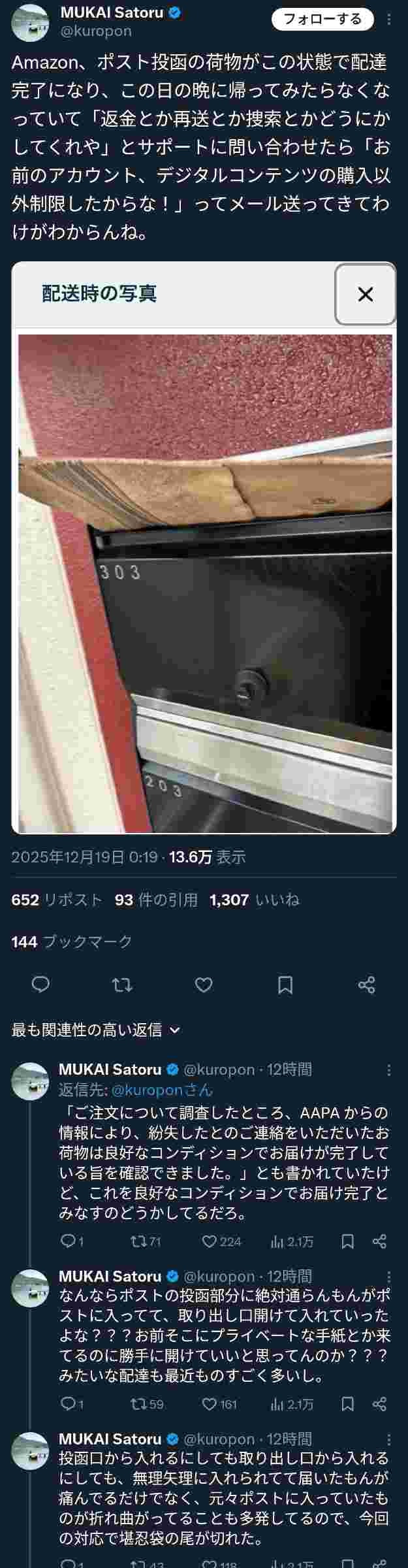 置き配不可に設定してたんなら言い分わかるけどどうなん?そうでなければただのクレーマー
