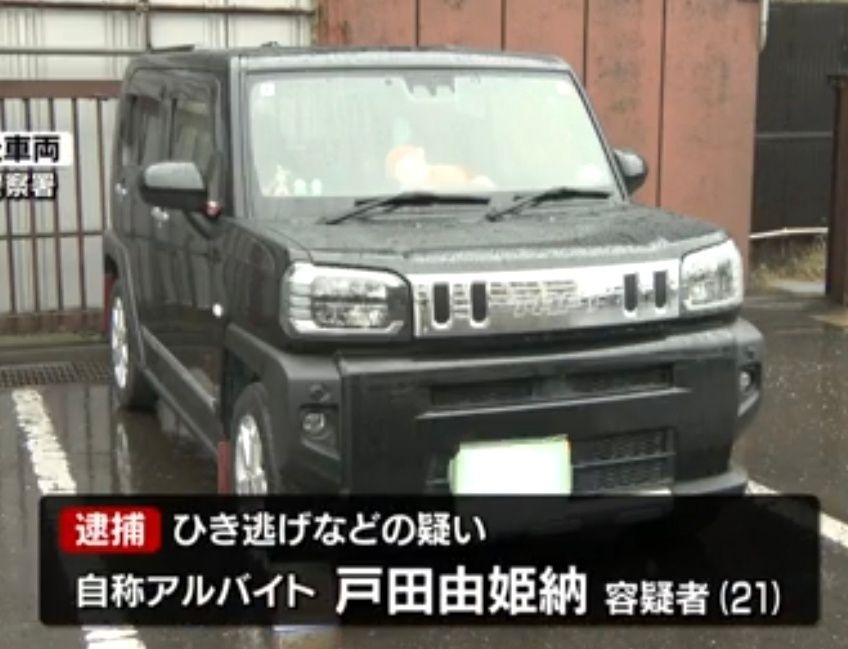 ひき逃げなどの疑いで逮捕されたのは、半田市南大矢知町に住む自称アルバイトの戸田由姫納容疑者(21)です。