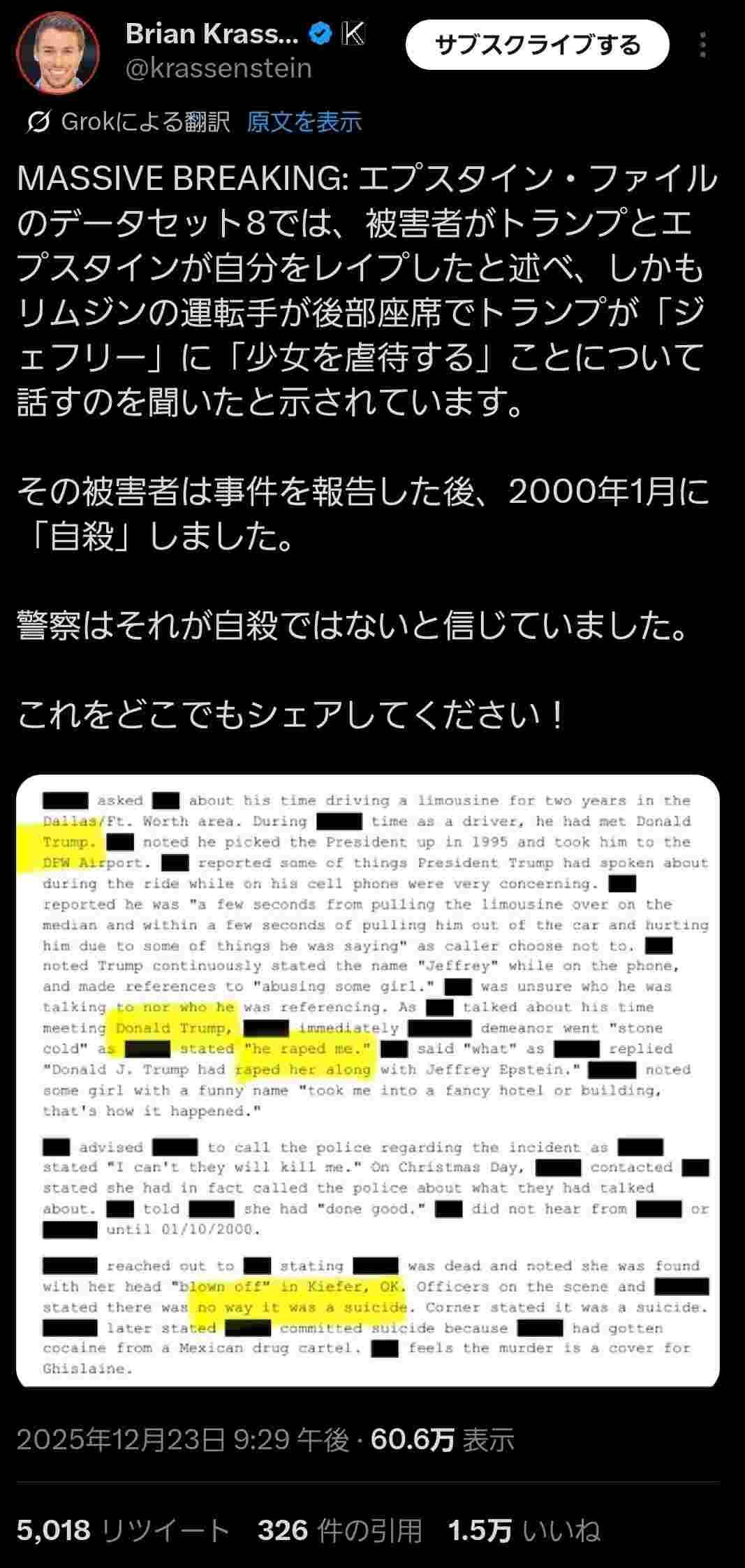 新たに開示されたエプスタイン文書からトランプの記述が見つかり始める エプスタイン「トランプはロリ友達」という手紙など