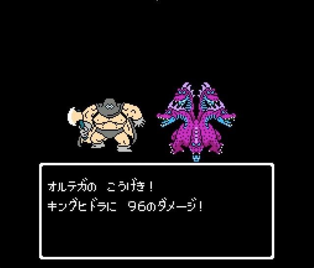 さて、オルテガがアレフガルドまで到達できた理由は、これである程度説明がつく。あとはファミコン時代に多くの子どもたちが疑問に思ったであろう、「なぜカンダタと同じ見た目だったのか」だ。冒険最終盤に勇者は、キングヒドラと戦う父の姿を見ることになるが、そのときに戦闘画面が流れる演出があり、その見た目がファミコンではカンダタと同じ「覆面パンツ姿」なのだ。