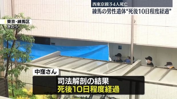 日テレNEWS NNN東京・西東京市の住宅で親子4人が死亡し、その後、母親が契約するマンションで男性の遺体が見つかった事件で、司法解剖の結果、男性の遺体が死後10日程度経過していたことが分かりました。