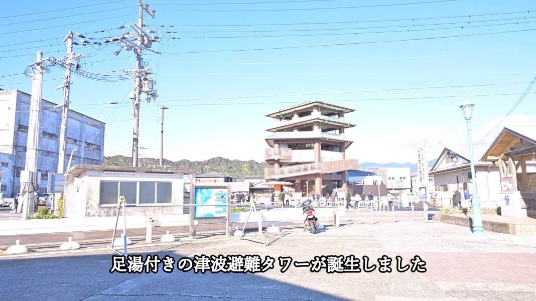 【動画】足湯付き津波避難タワー 観光拠点地域に整備、和歌山県那智勝浦町