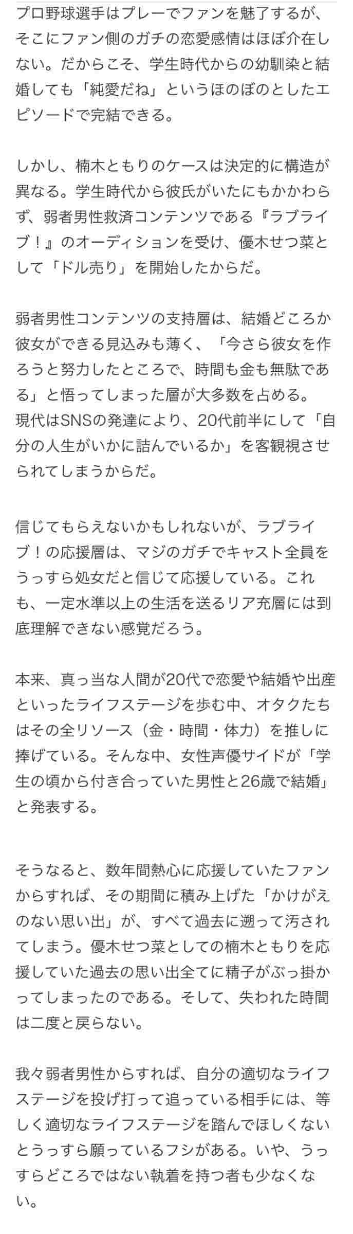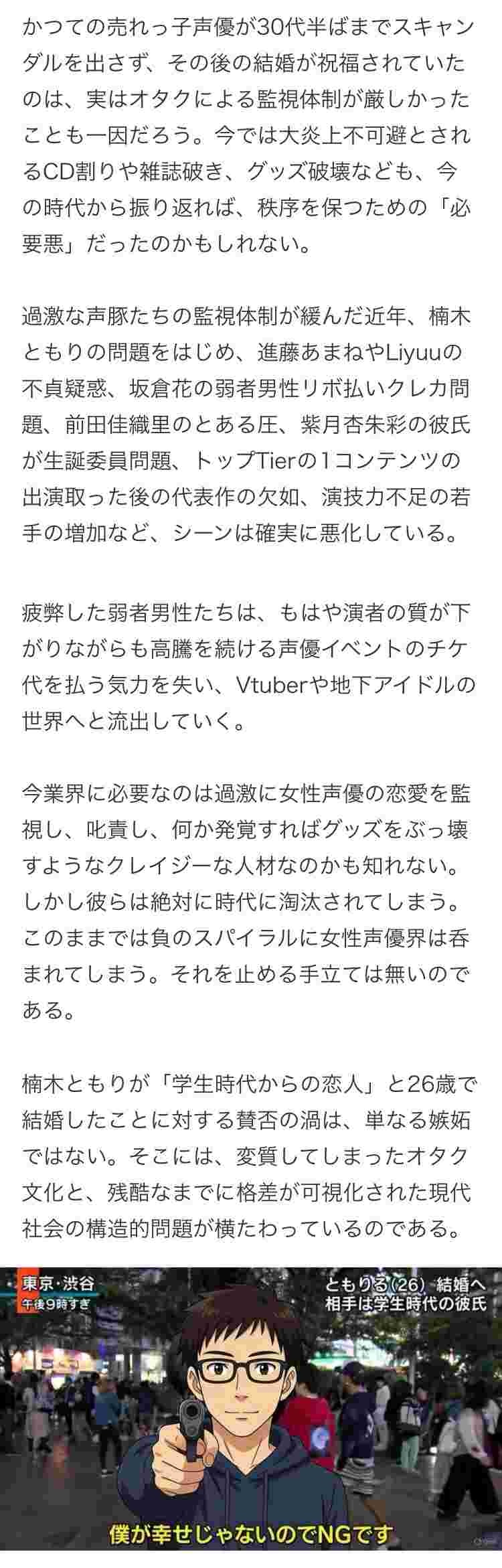 ここ数年は声優の結婚は祝わないといけない雰囲気になってたのにな