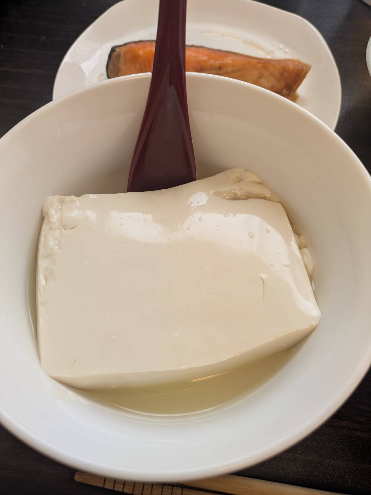 湯気は見えないが豆腐が加熱してあるっぽくて良い