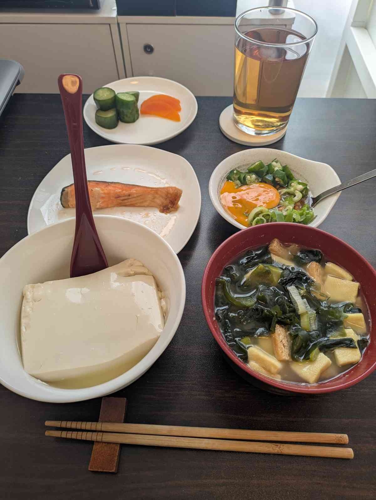 納豆オクラ卵まで混ぜたんならそのまま豆腐にぶっかけて潰して食うでええな