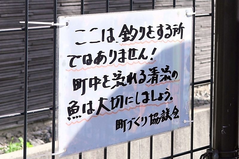街中心部の水路を泳ぐ魚 狙う釣り人が後絶たず住民困惑「地域の宝」