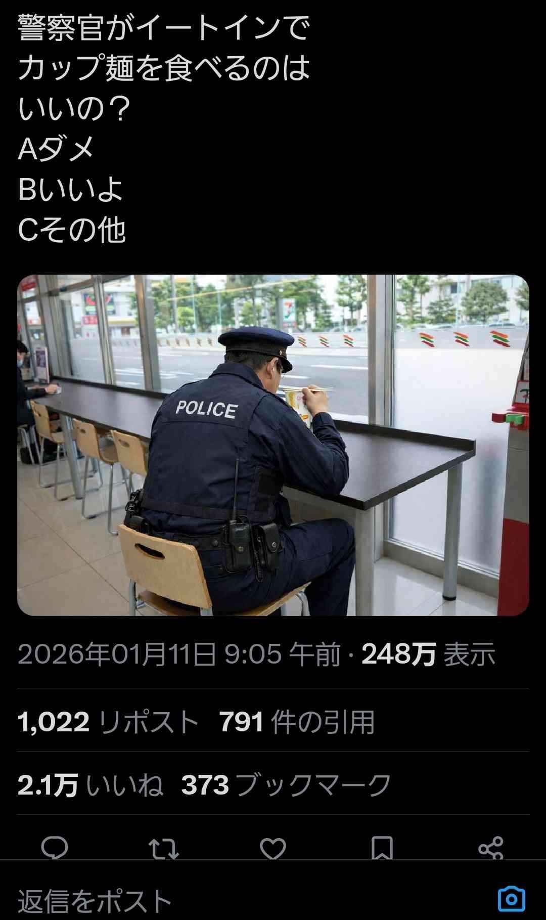 警察官が制服来てコンビニでカップ麺はやっぱダメだろ
