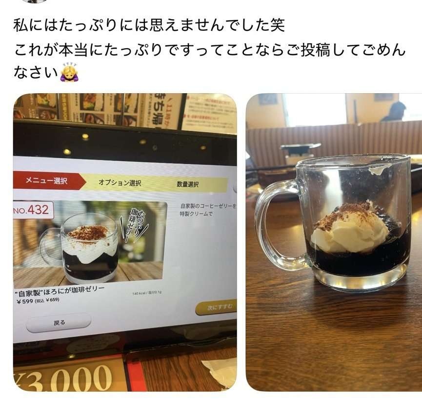 普通にコーヒーゼリーという商品名にしておけばいいのにたっぷりなんて付けるから晒される
