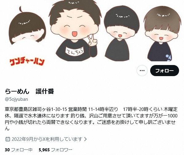 1/18(日) 15:33東京都豊島区にある「らーめん 護什番」が17日に公式X(旧ツイッター)を更新。