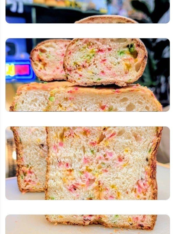 【画像】生地にカラースプレーチョコを混ぜて焼いたパンがヤバすぎるwww