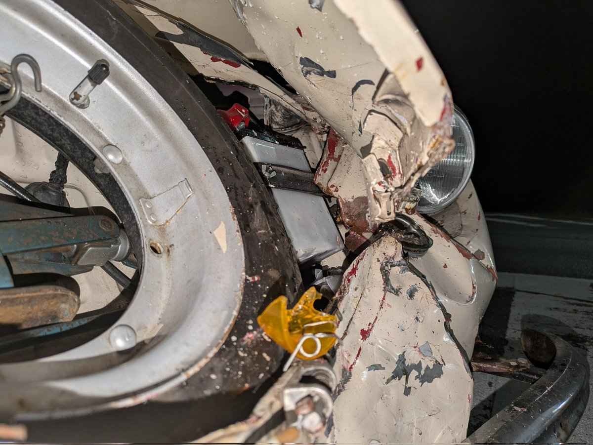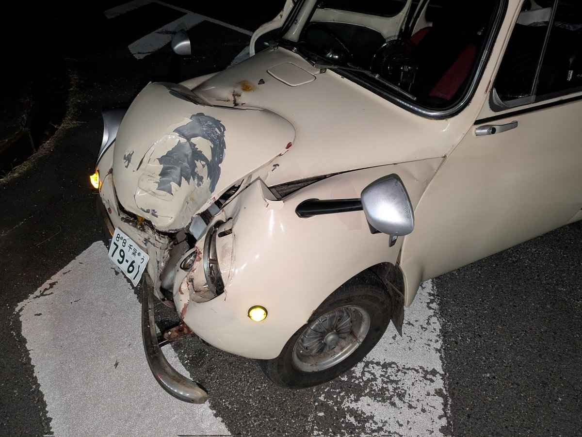 フロントはオシャカ、右ドアだけ内側凹むもドア開閉左右とも問題なし、エンジン無傷。