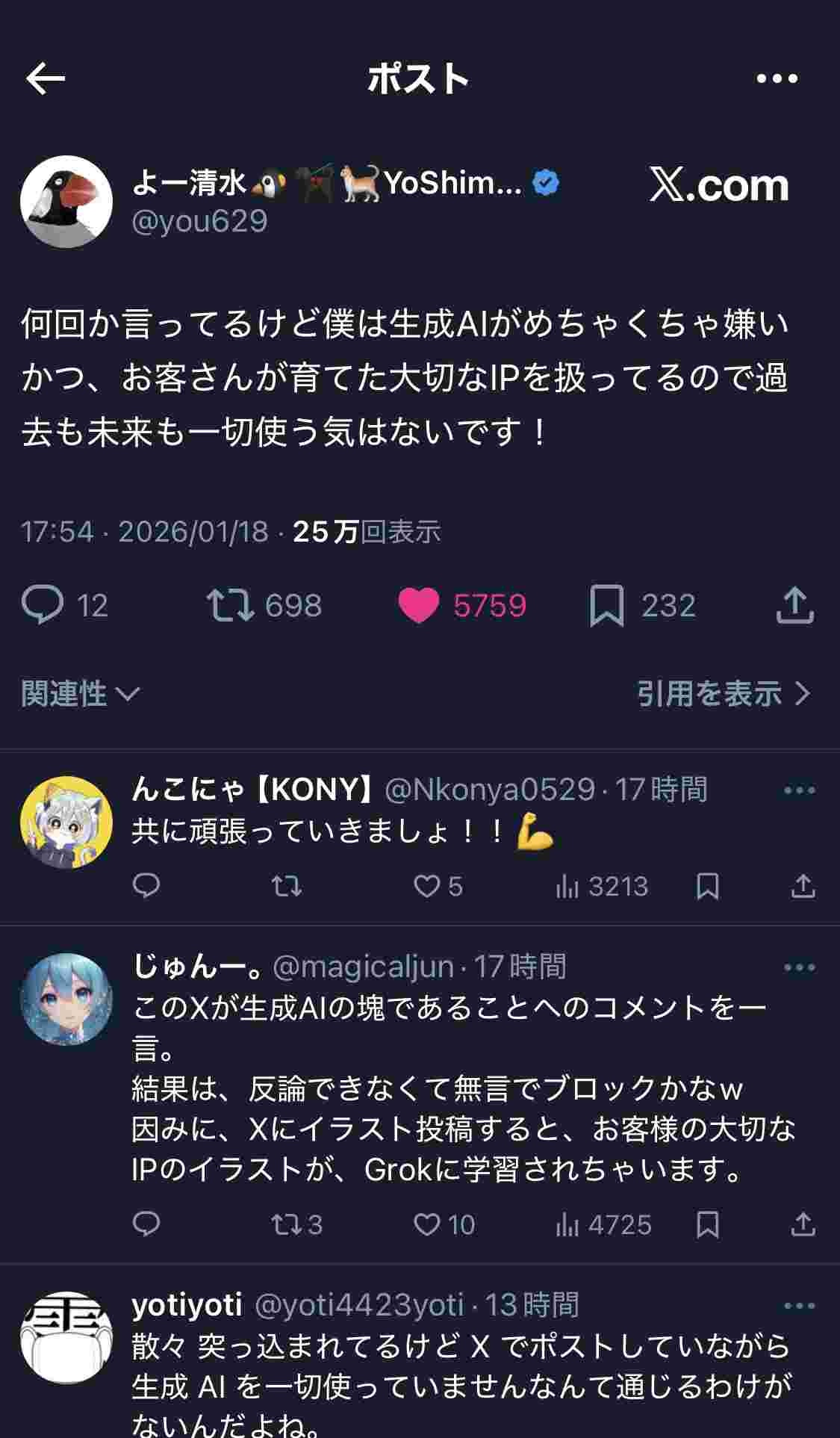 それとこういう一線のプロの場合大半の反AIみたいなお遊び連中と違ってただの「嫌い」だけでは済まない