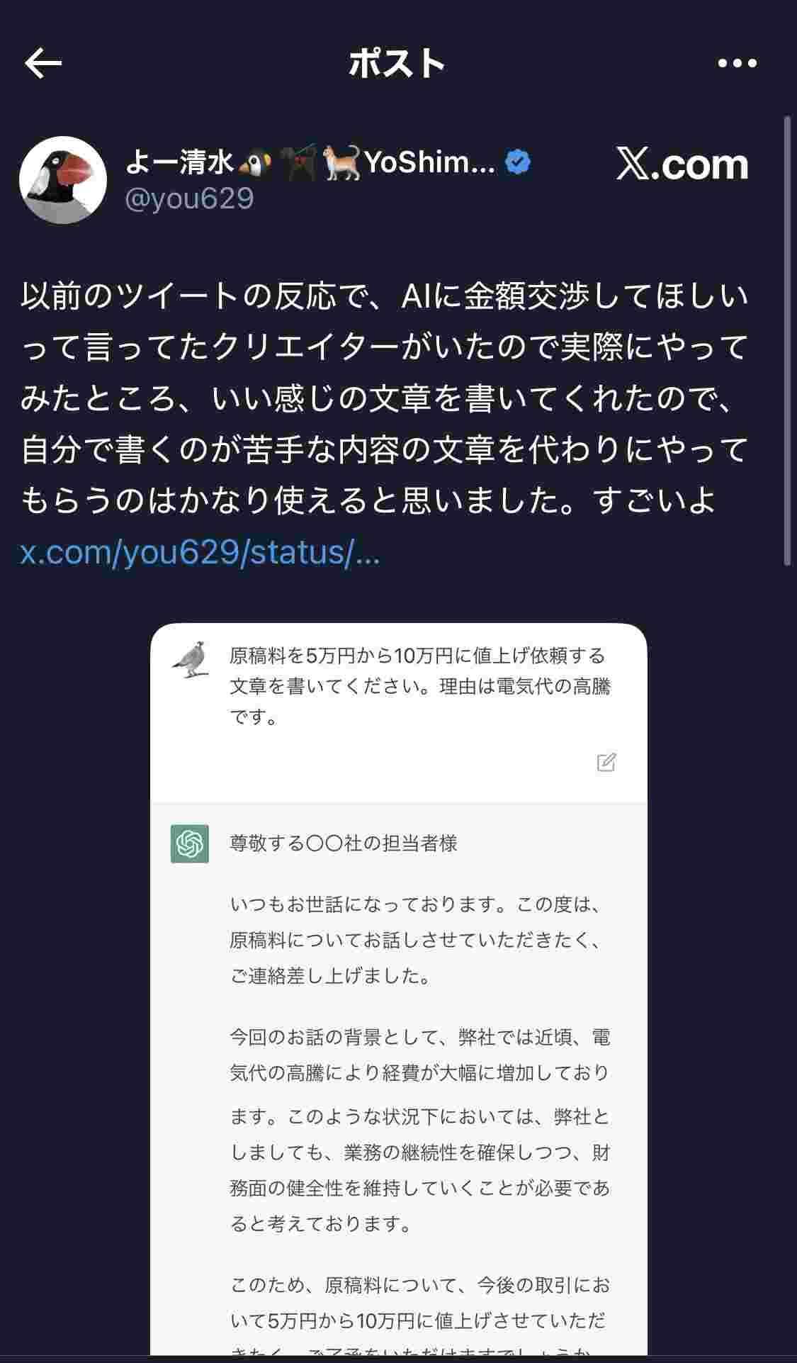 普通のサラリーマンしてる人ならこのくらいの文章チャッピーに指示するより自分で書いた方が早いレベルよな