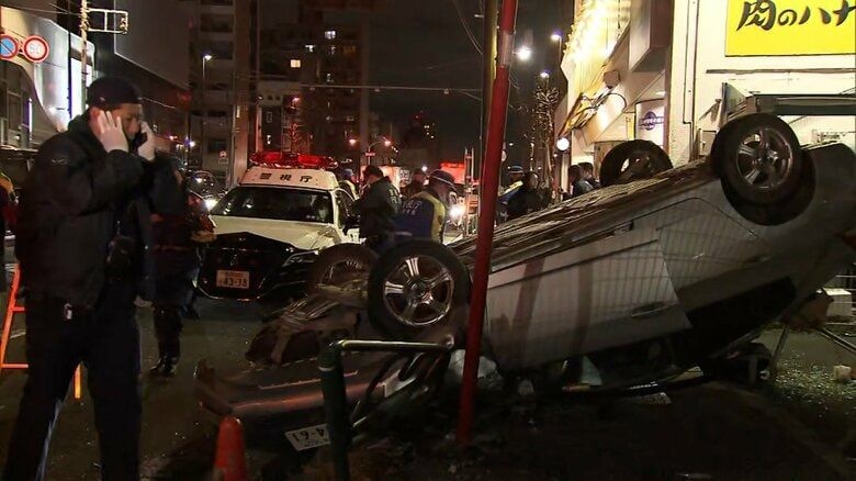 東京・杉並区で20日夜、パトカーの追跡を受けていた車が横転事故を起こしました。