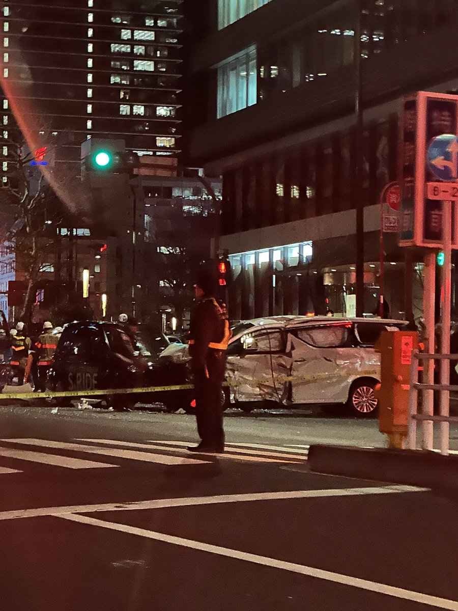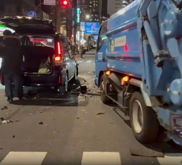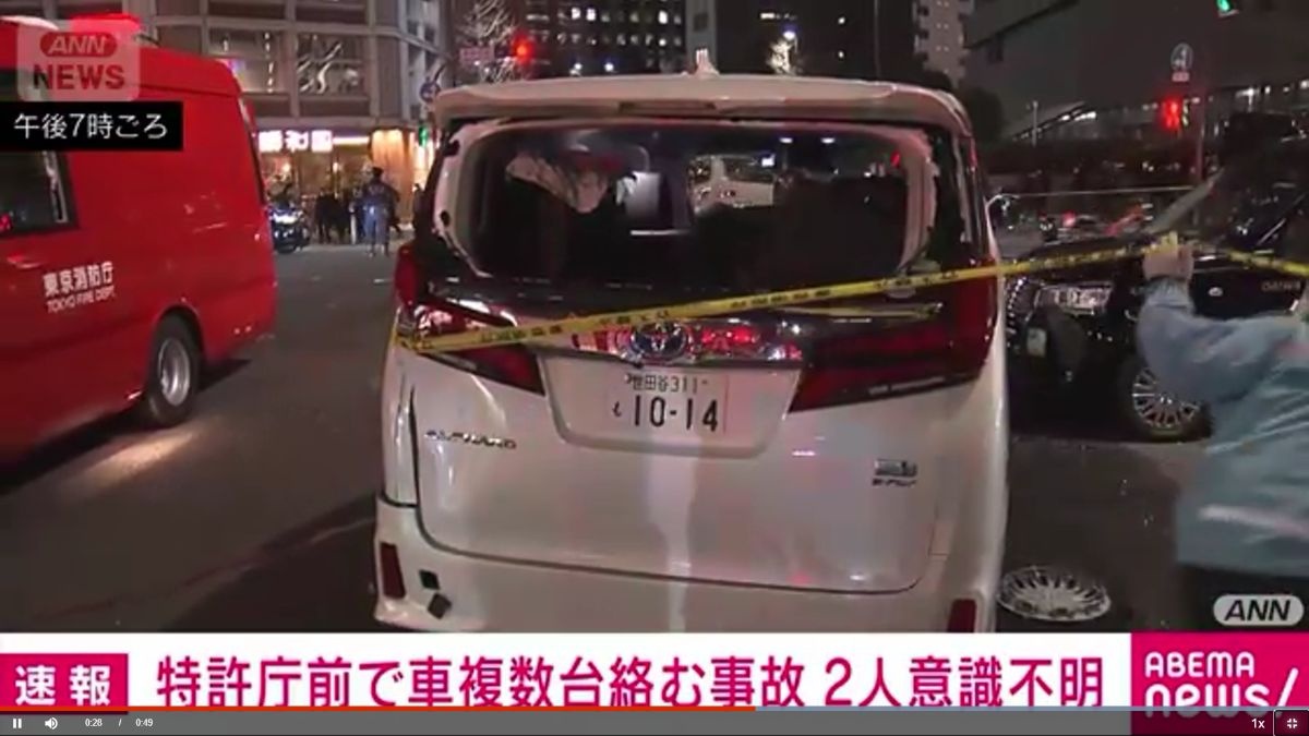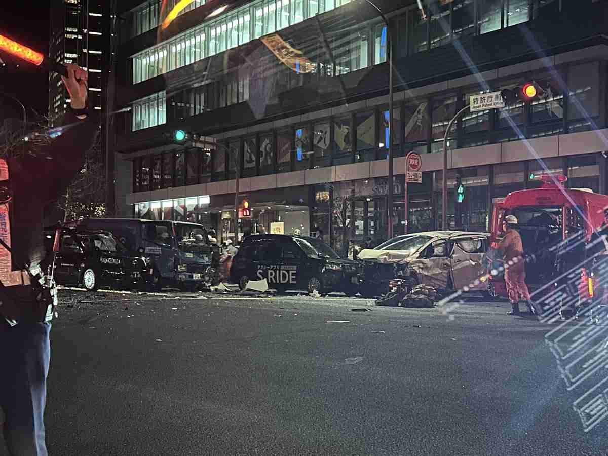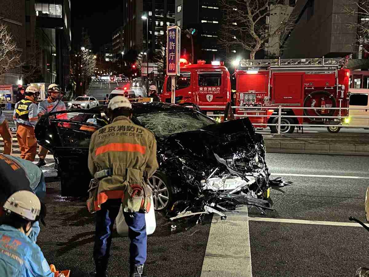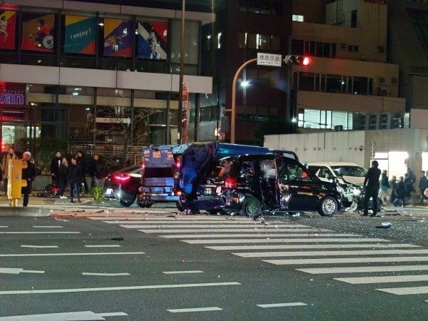 捜査関係者によりますと、きょう午後6時半すぎ、東京・港区赤坂1丁目の「特許庁前」の交差点で、タクシーやごみ収集車など車両6台が絡む事故があったということです。【写真を見る】車両6台が絡んだ事故現場の様子
