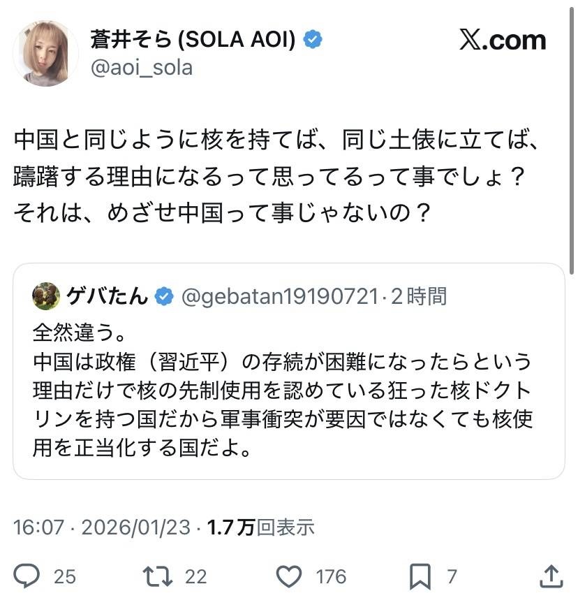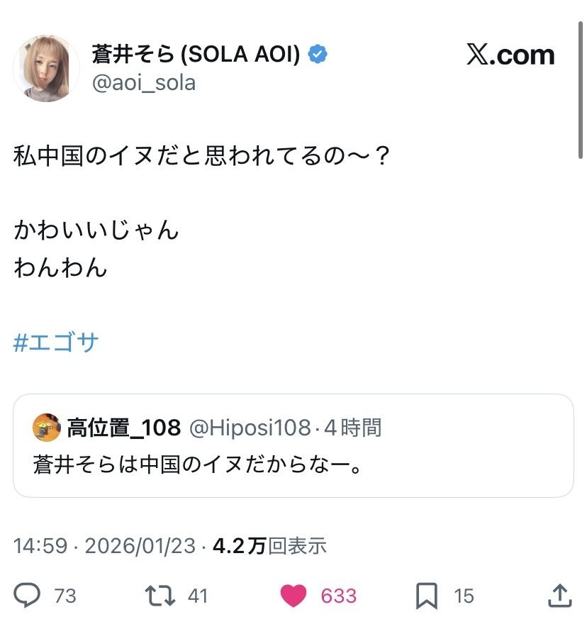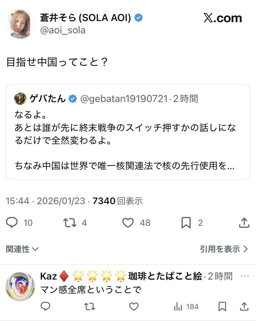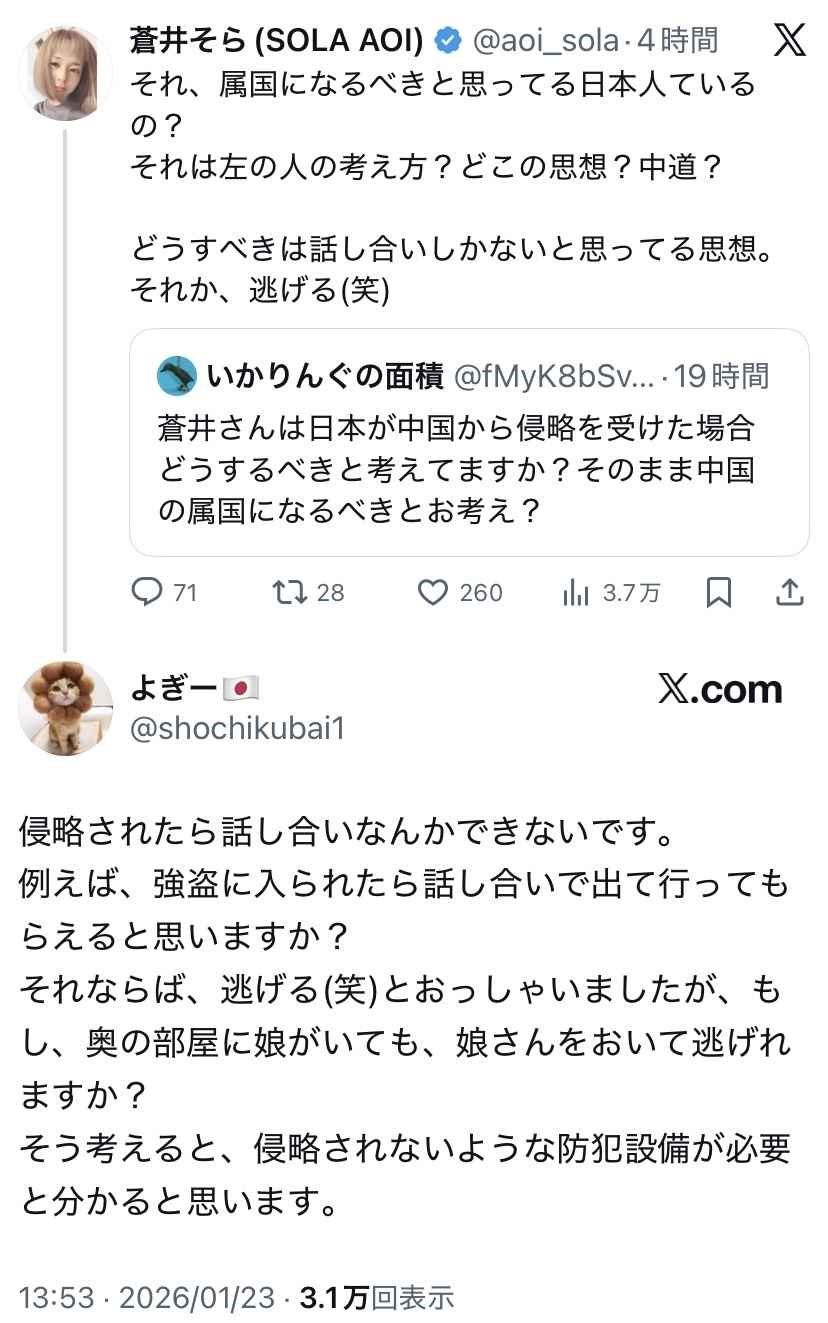 蒼井そら(44)、日本の愛国者たちにダル絡みされて炎上