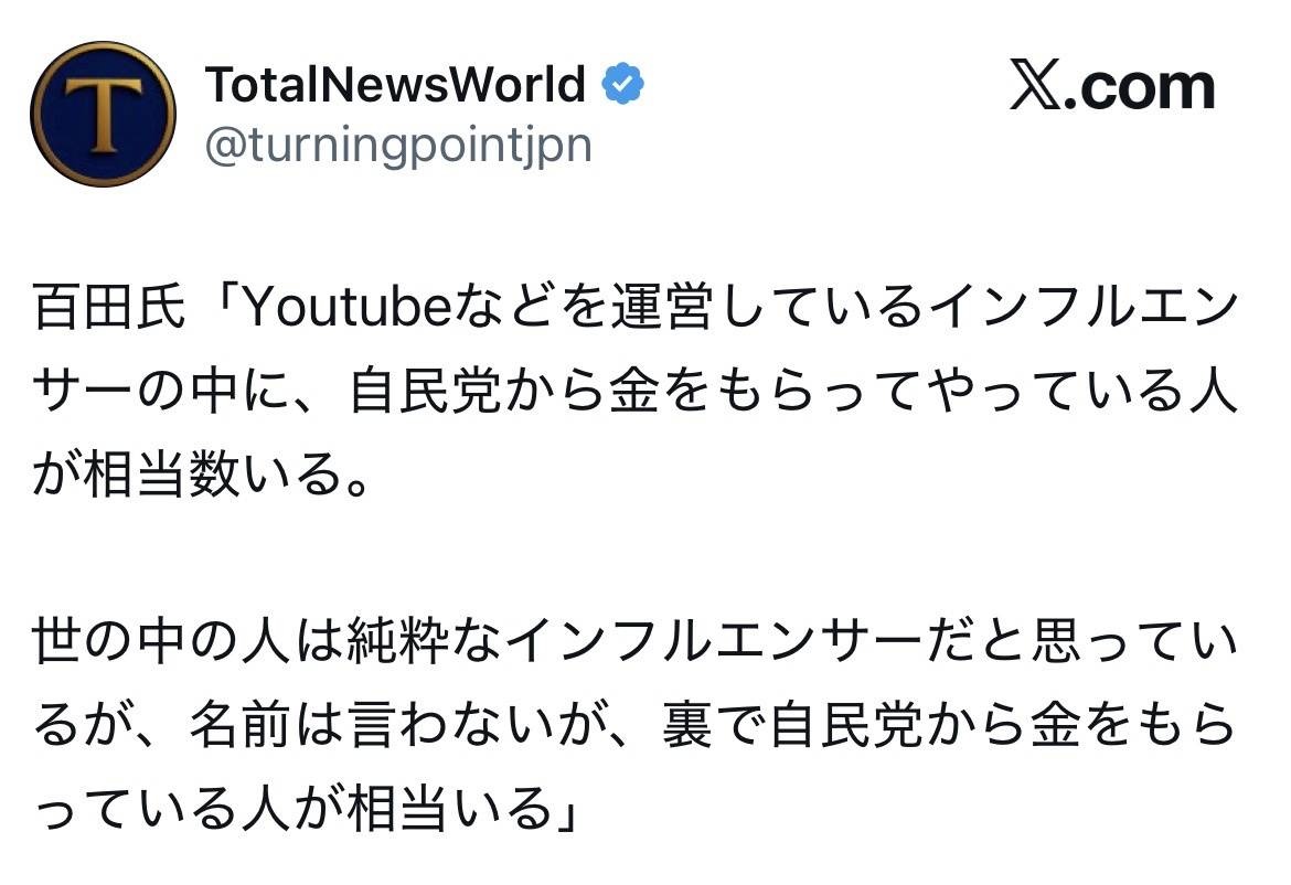 最近突然自民を支援し始めたYoutuber