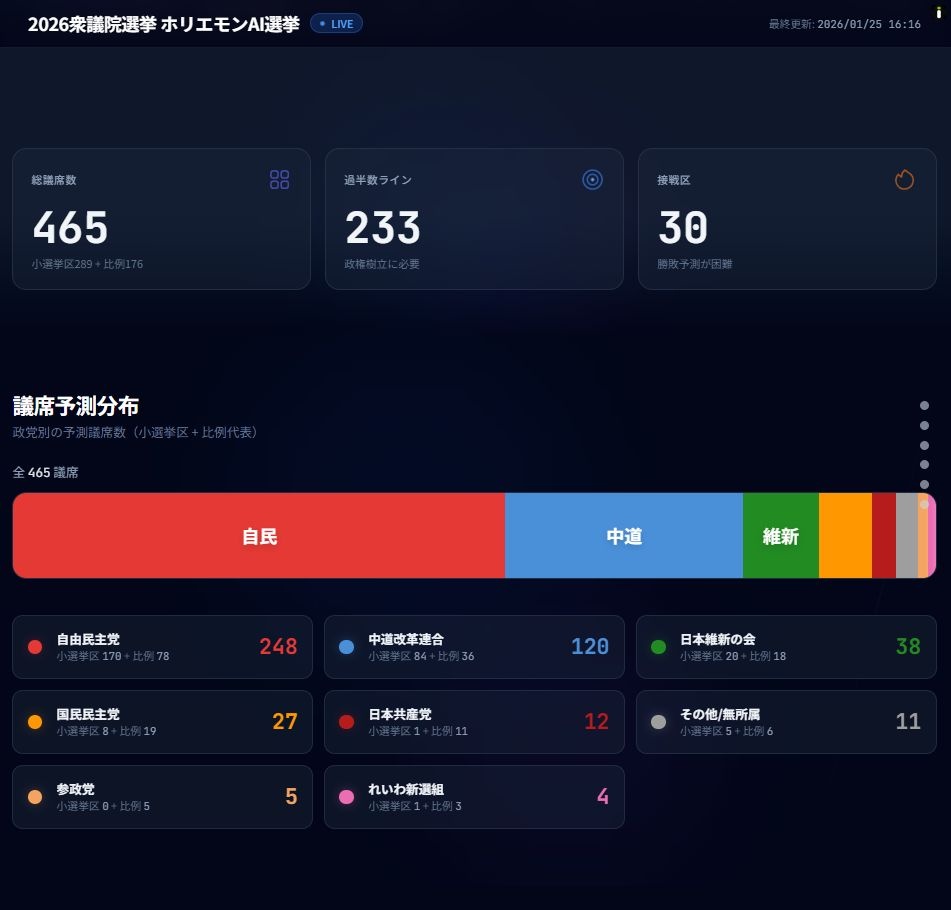 ホリエモンの予想がこれなら案外中道が勝つかもしれんな?