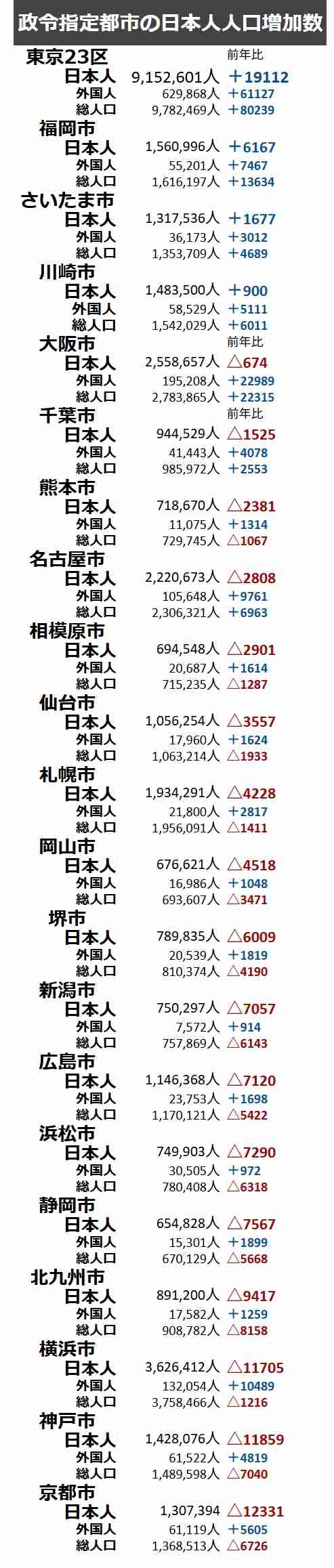 【衝撃】大都市の日本人増減ランキングがヤバすぎるwww