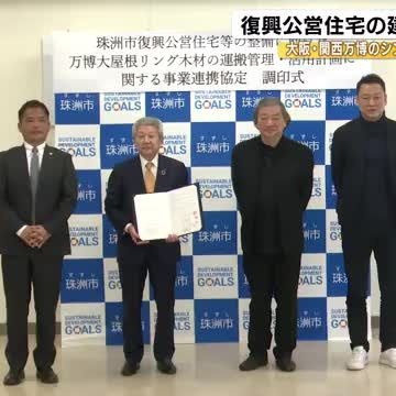 大阪・関西万博のシンボル大屋根リングの木材が被災地に作られる復興公営住宅の梁や柱の一部に活用されます。26日珠洲市でこの事業の連携協定の調印式が行われました。