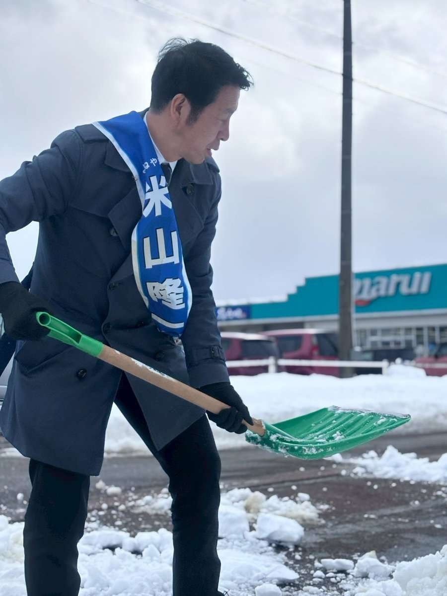 中道の米山隆一が路肩の雪を道路に撒く動画を自ら投稿→ 騒ぎになって削除