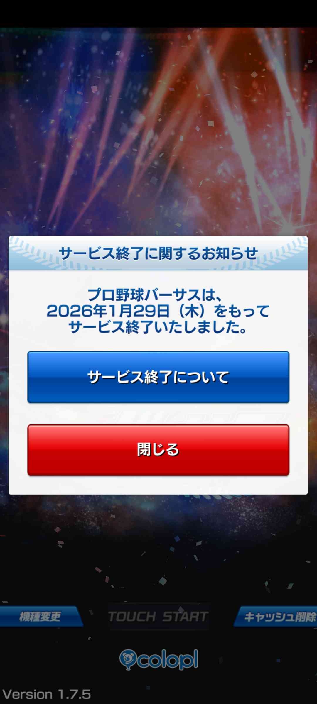 コロプラのアプリ『プロ野球バーサス』のサービスが、2026年1月29日15時をもって終了となります。
