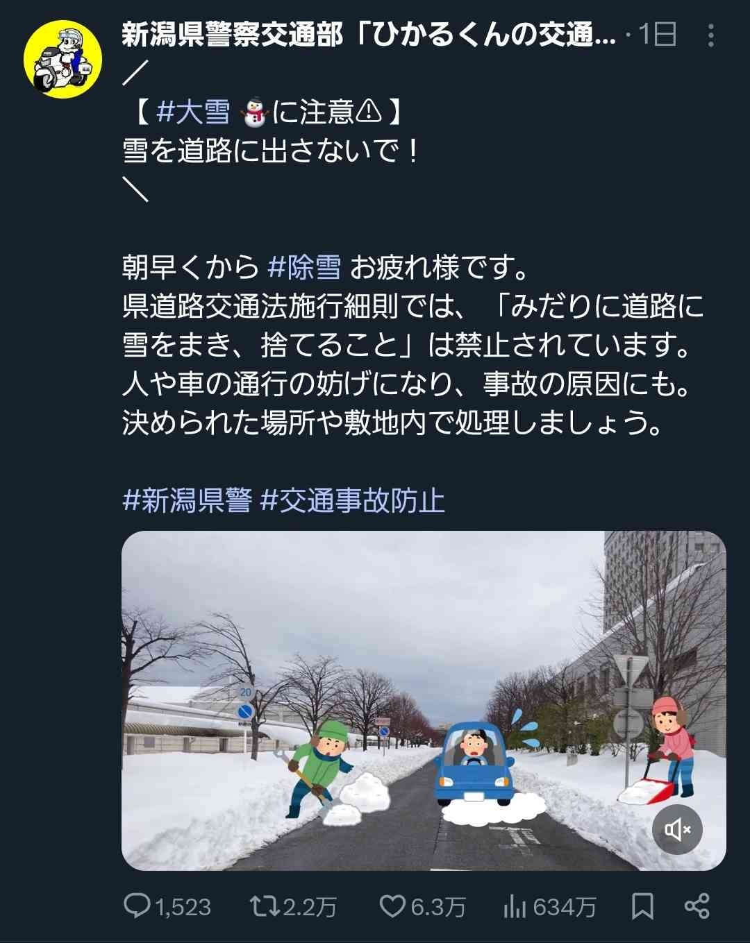 新潟県警、ブチギレ「道路に雪を絶対に撒くな」www