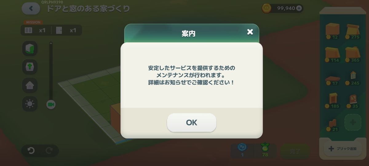 ゲームをインストール済みの方は、最後のときまで『ブリックシティ』の世界をお楽しみください。