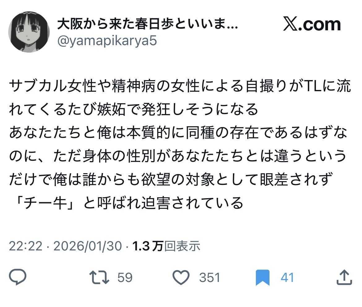 チー牛やオッサンのメンヘラなんてこの世で一番需要のない存在だろ