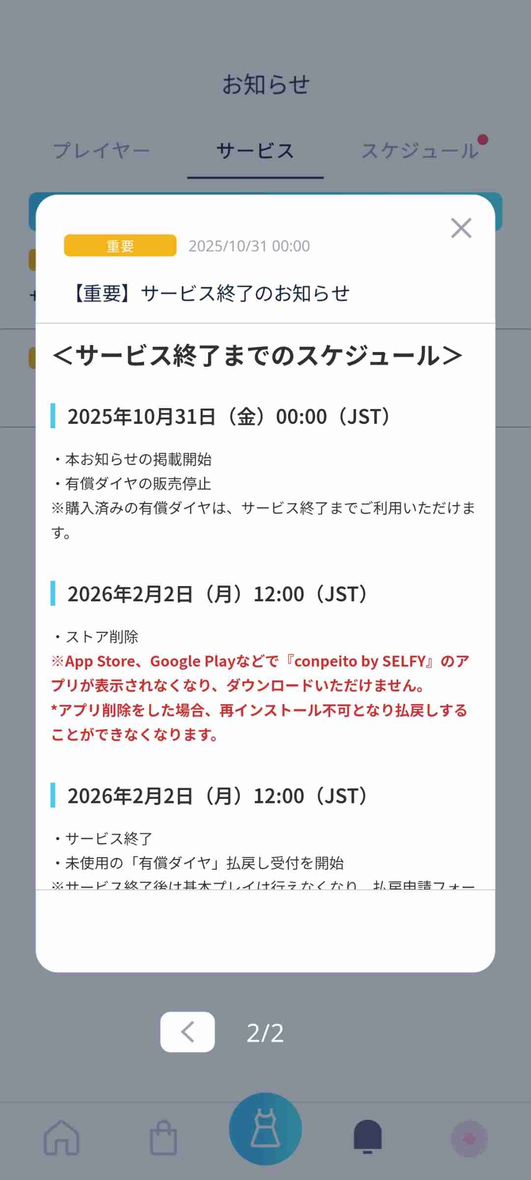 ・「conpeito by SELFY」お問い合わせの対応を終了