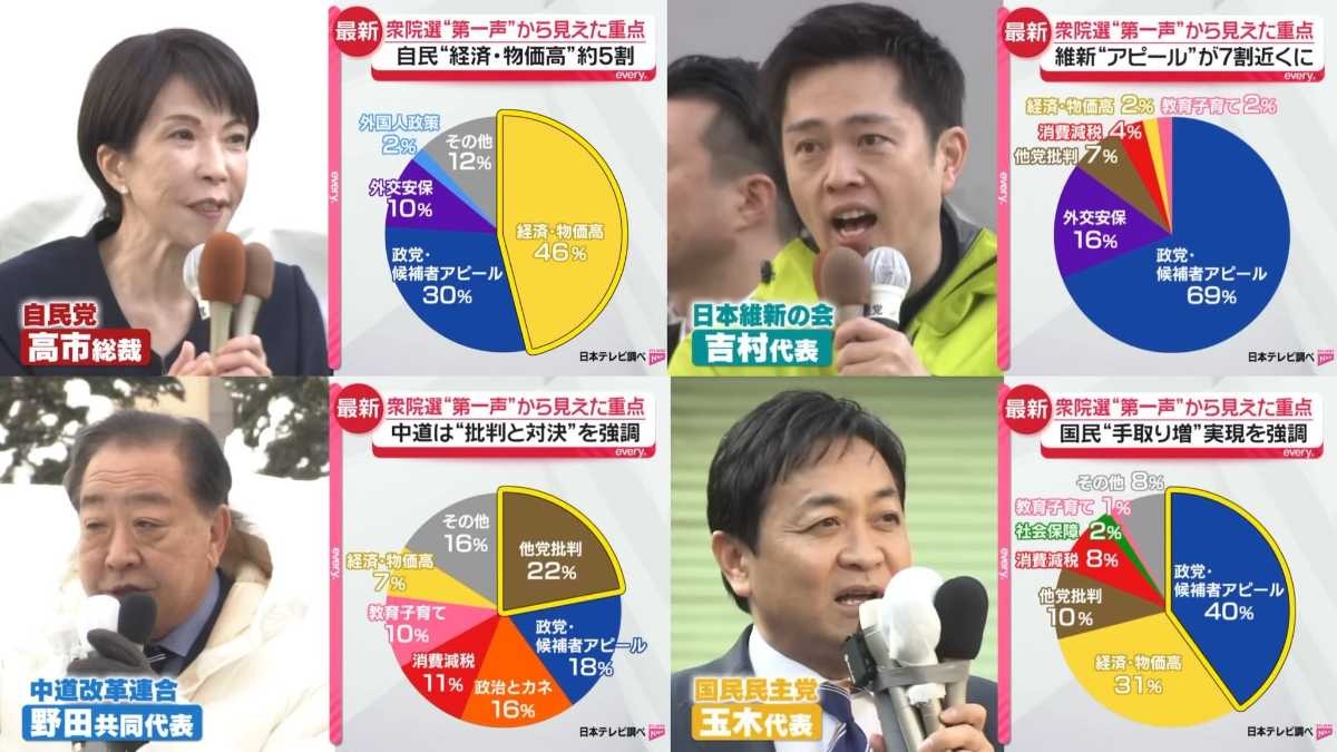 「日本テレビは、各党の党首の第一声を独自に分析しました。それぞれ何を訴えていたのでしょうか?」