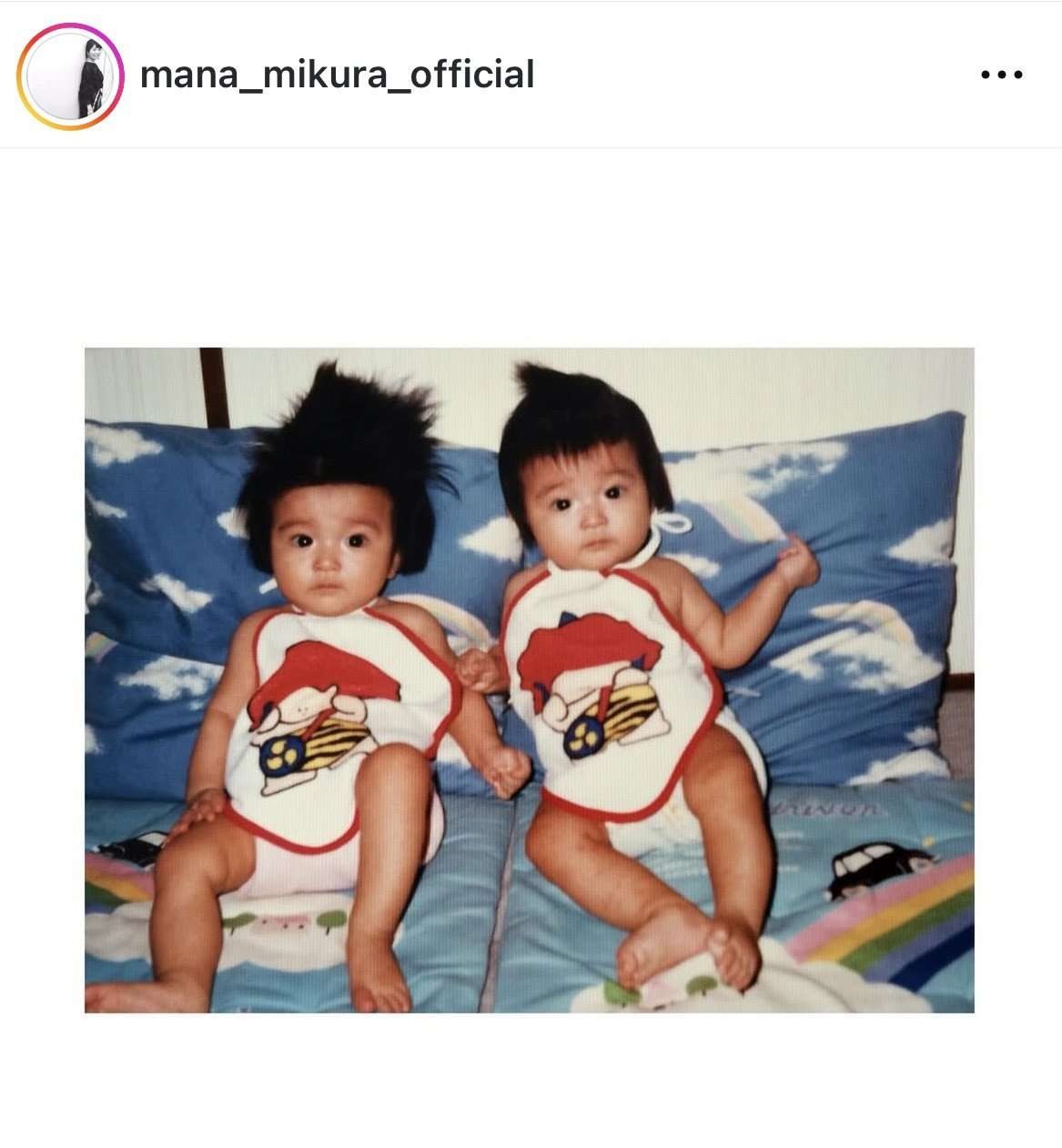三倉茉奈、“双子の日”にちなみ超高難易度のクイズ「どっちがどっちかわかりますか?」 幼少期の“マナカナ”ショットに反響三倉茉奈が公開した 写真2枚目(写真は三倉茉奈インスタグラム @mana_mikura_official より)