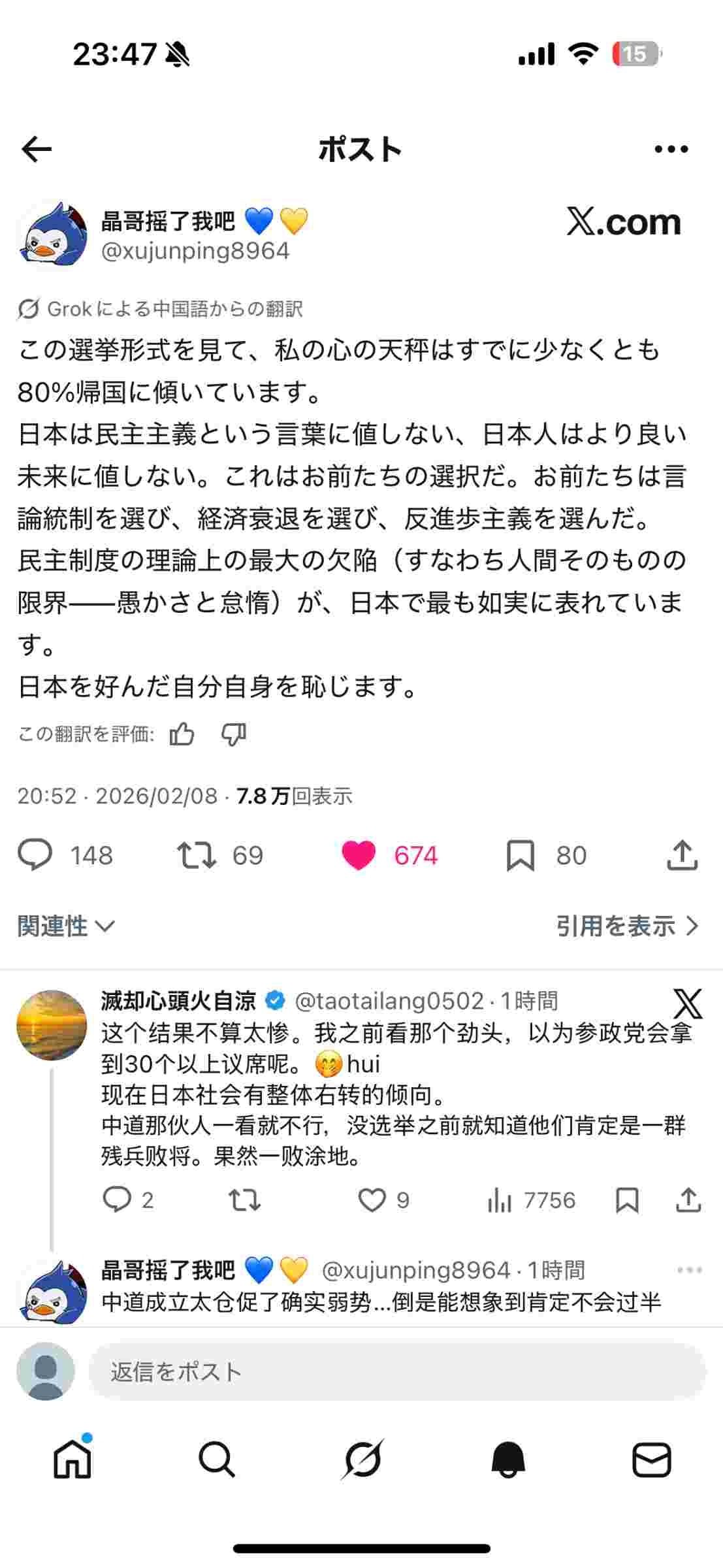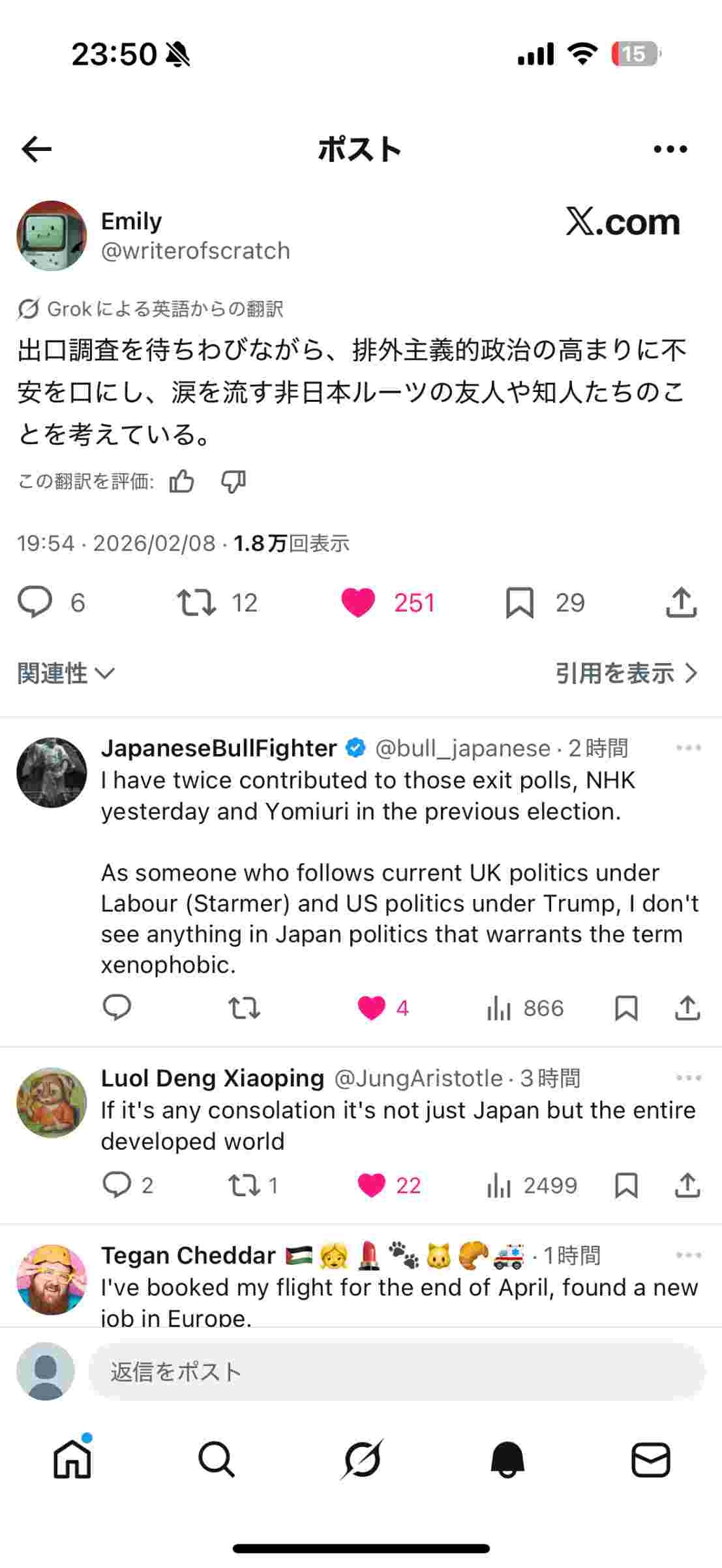 日本が本当に好きだって気持ちで来てくれていた人も居ただろうにこんな事になって本当に申し訳無い気持ちだよ