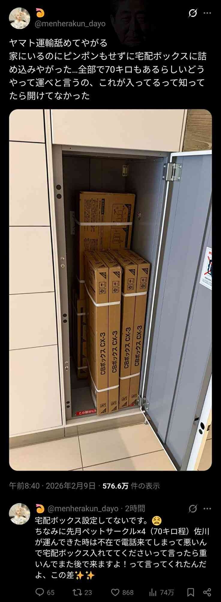 別にいいだろてかそんな遠いの宅配ボックスて