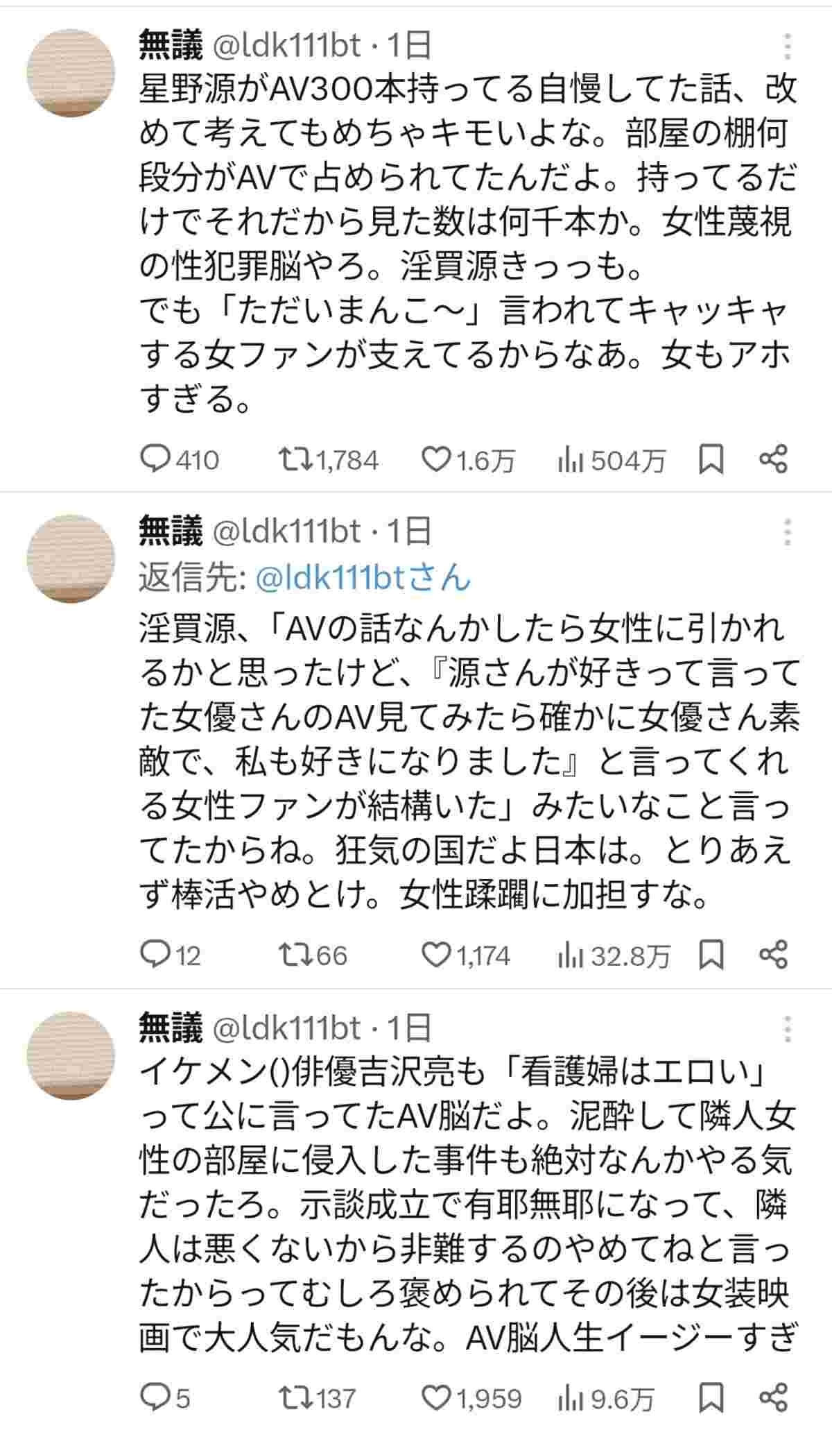 星野源とか毎日シコってる顔してるだろ今更やん