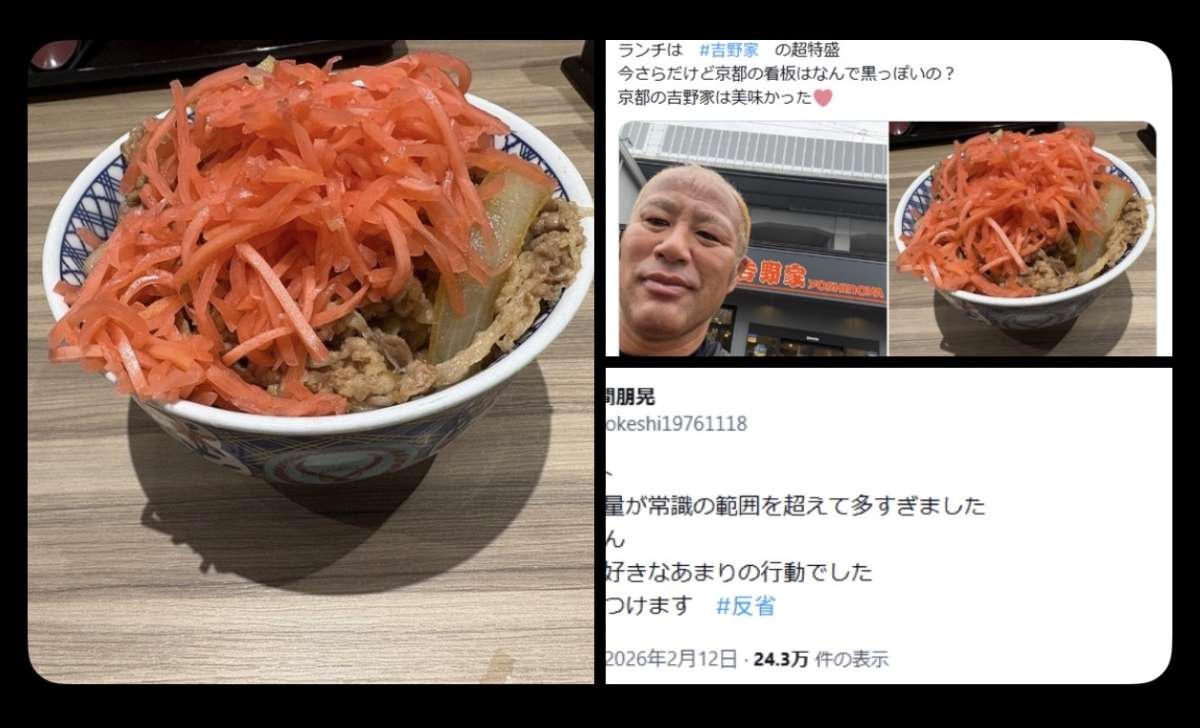 プロレスラー・本間朋晃氏(49)がランチで食べた紅生姜山盛りの牛丼写真をアップ