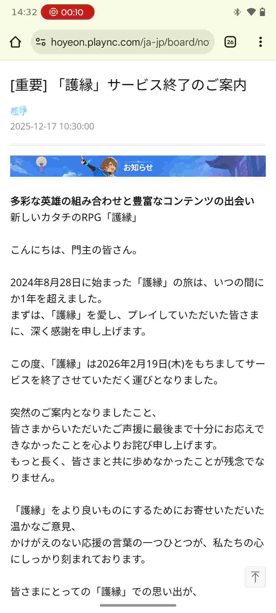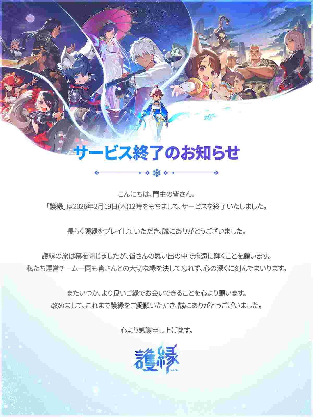 この度、「護縁」は2026年2月19日(木)をもちましてサービスを終了させていただく運びとなりました。