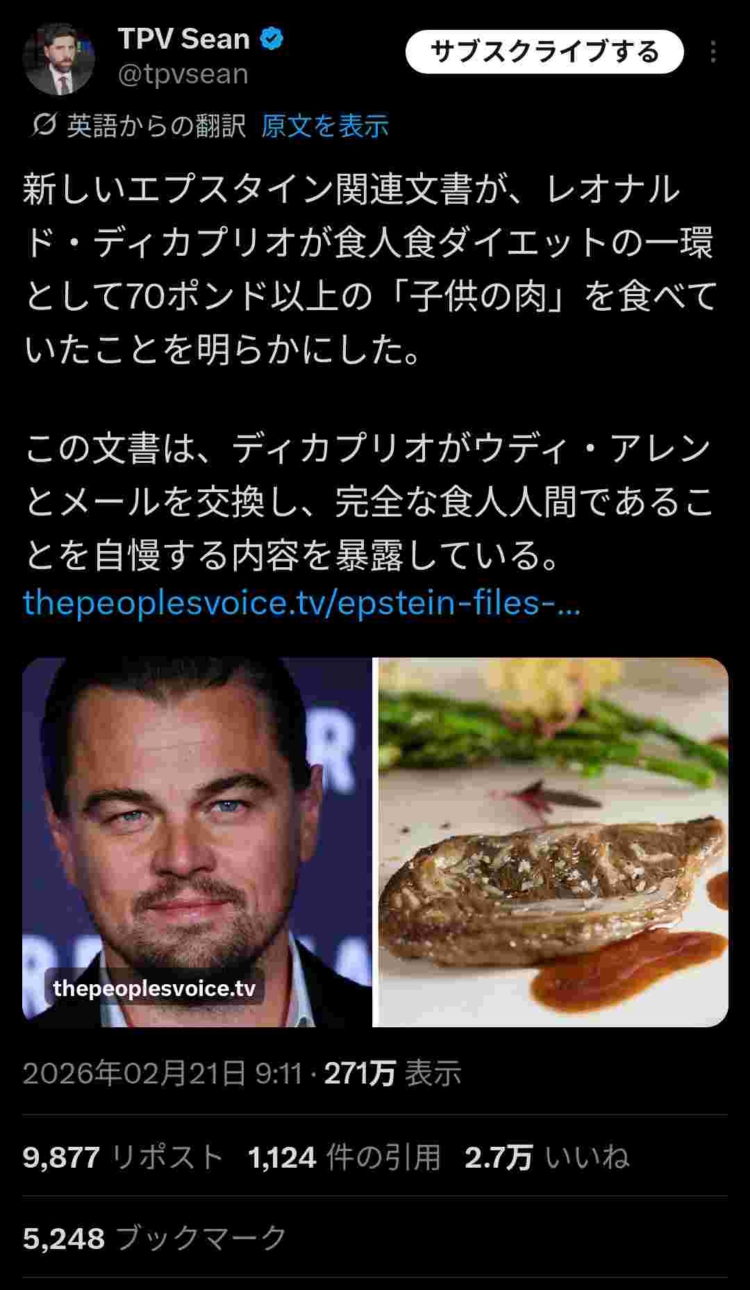 【高市エプスタイン悲報】レオナルド・ディカプリオさん、幼女の肉を食う食人族だったことが暴露され終わるwww
